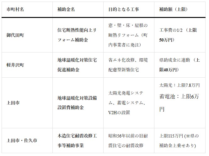 🏘️ 東信地域(上田・佐久・御代田・軽井沢)特有の補助金